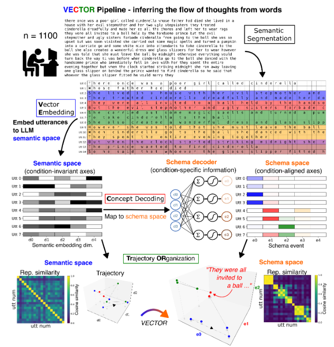 To harness this potential for cognitive science, scientists introduced VECTOR, a computational framework that aligns LLM representations with human cognitive map organisation. VECTOR casts a participant’s verbal reports as a geometric trajectory through a cognitive map representation, revealing how thoughts flow from one idea to the next. Applying VECTOR to narratives generated by 1,100 participants, they showed these trajectories have cognitively meaningful properties that predict paralinguistic behaviour (response times) and real-world communication patterns. The study suggested that this approach approach opens new avenues for