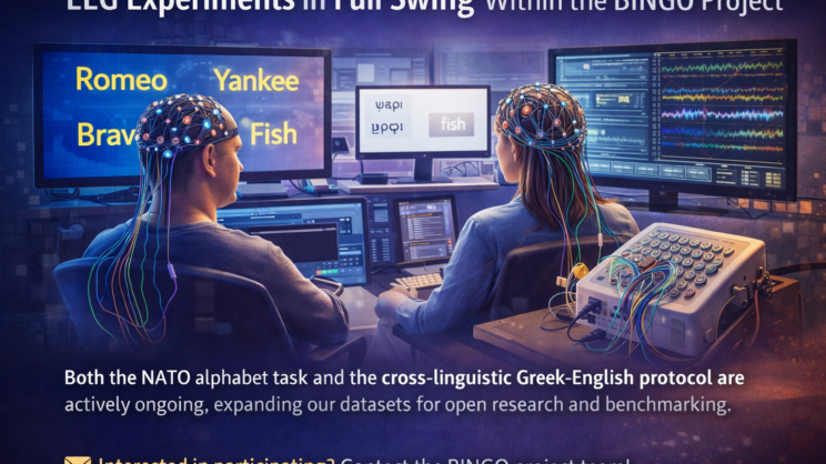 EEG experiments within the BINGO project are currently in full swing, with data collection actively ongoing across both imagined speech paradigms: the NATO alphabet task and the cross-linguistic Greek–English protocol. Participants engage in carefully structured recording sessions designed to ensure…